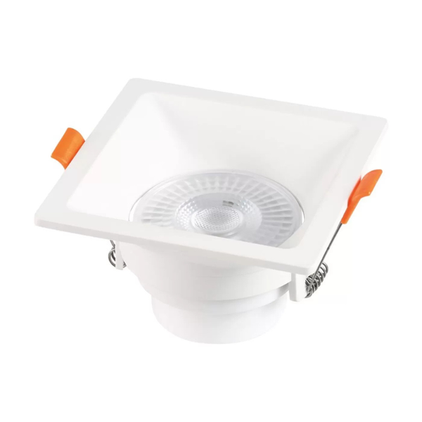 Com design quadrado e recuado, oferece iluminação direcionada e elegante, ideal para destacar pontos específicos do ambiente. Possui corpo em ABS e policarbonato na cor branca, combinando resistência, leveza e um visual clean que valoriza a decoração com eficiência e economia de energia.